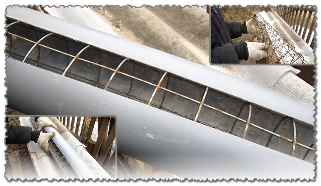 Събираме кофраж. За да направите това, поставяме брониран колан в едната половина на тръбата и затваряме другата половина на PVC тръбата отгоре. Фиксираме кофража върху болтовия прът.