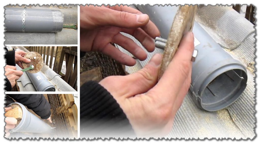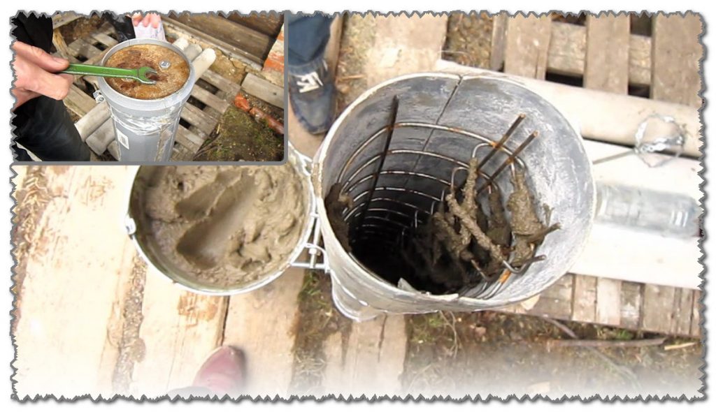Фиксираме тръбата вертикално. Изсипете циментовата смес вътре в пластмасовия кофраж. Използваме стълб за уплътняване и отстраняване на мехурчетата на въздуха. Оставяме продукта да изсъхне. След един ден кофражът може да бъде премахнат.