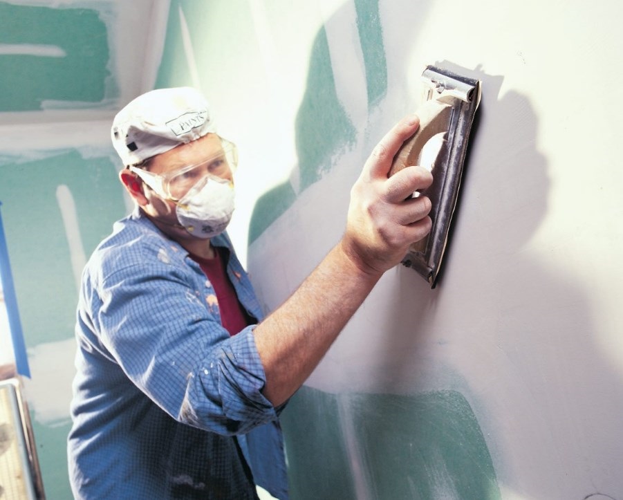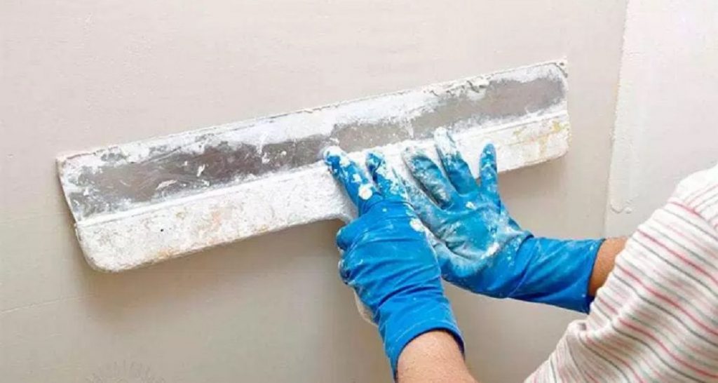 След като първият слой шпакловка изсъхне, петната се отстраняват със шпатула, и след това повърхността се шлайфа и грундира.