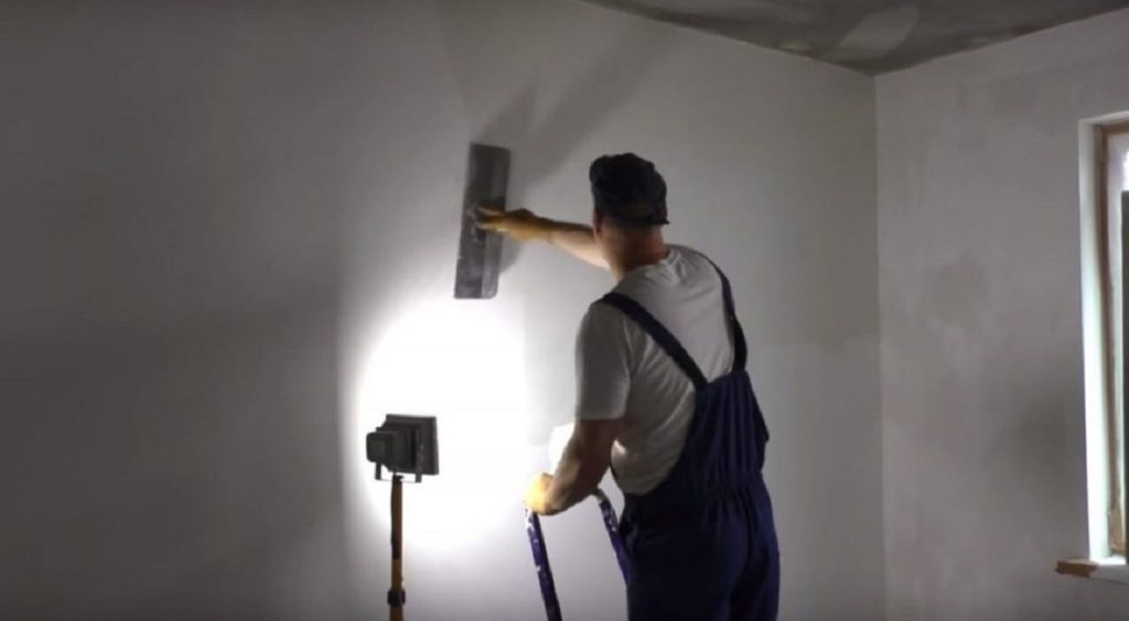 Шпакловката се нанася на два слоя - и първият, и вторият слой се шлайфат и се обработват с грунд. Последният слой се препоръчва да се нанася при странично осветление - по този начин всички недостатъци са по-добре видими.