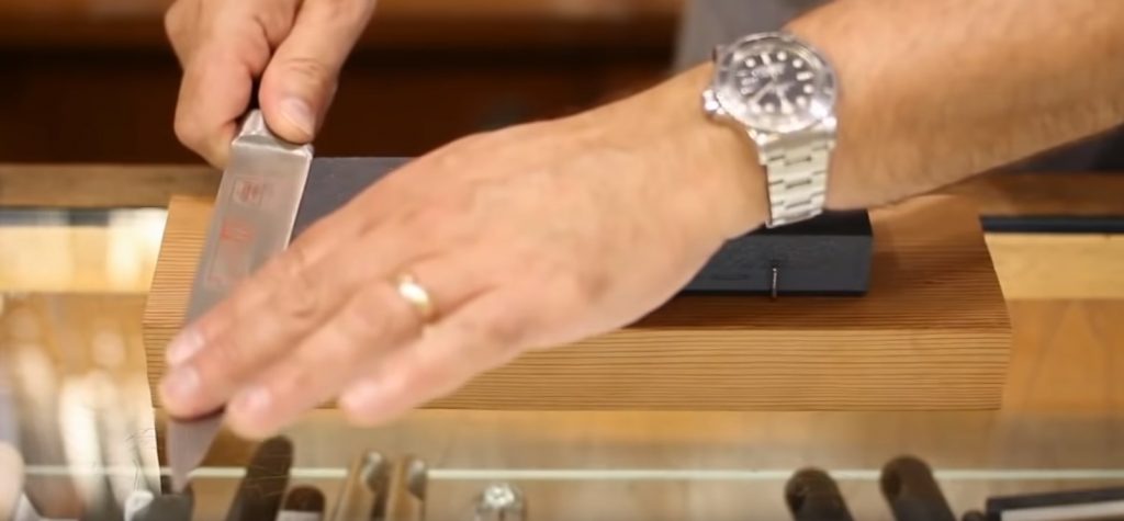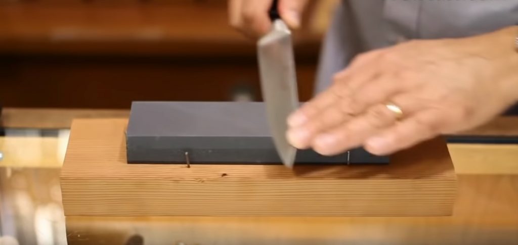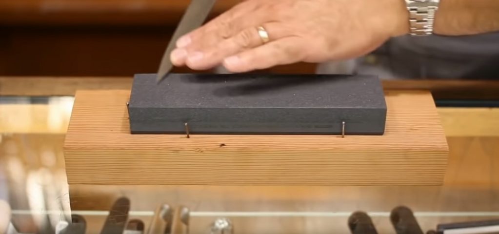 Камъкът се използва за заточване на ножа на острието му се придава идеална форма под формата на буквата V. Именно в това състояние ножът ще реже добре.