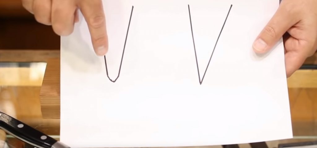 В процеса на заточване и полиране често възниква въпросът: какъв ъгъл да използвате? Тук всичко е просто - ъгълът на заточване трябва да бъде приблизително равен на ъгъла, под който маслото се нарязва с нож, тоест в рамките на 10-30 °.