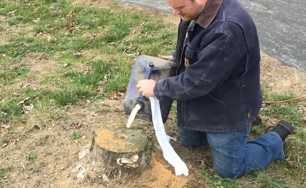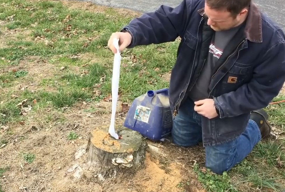 Обща сума: 10 минути за пробиване на дупки, чаша дизелово гориво, парче парцал, няколко кибрита и след 12 часа изобщо няма пън. Отличен резултат!