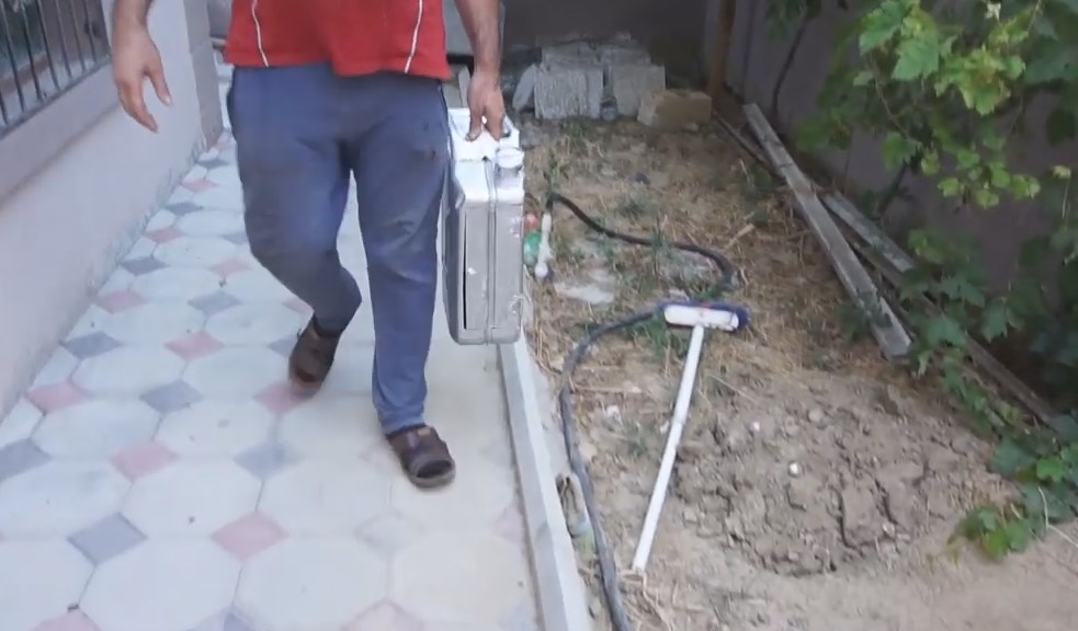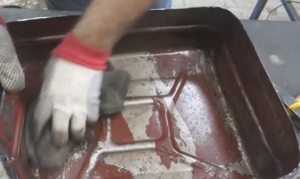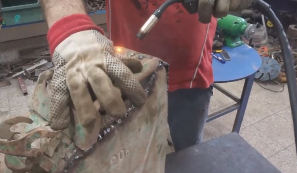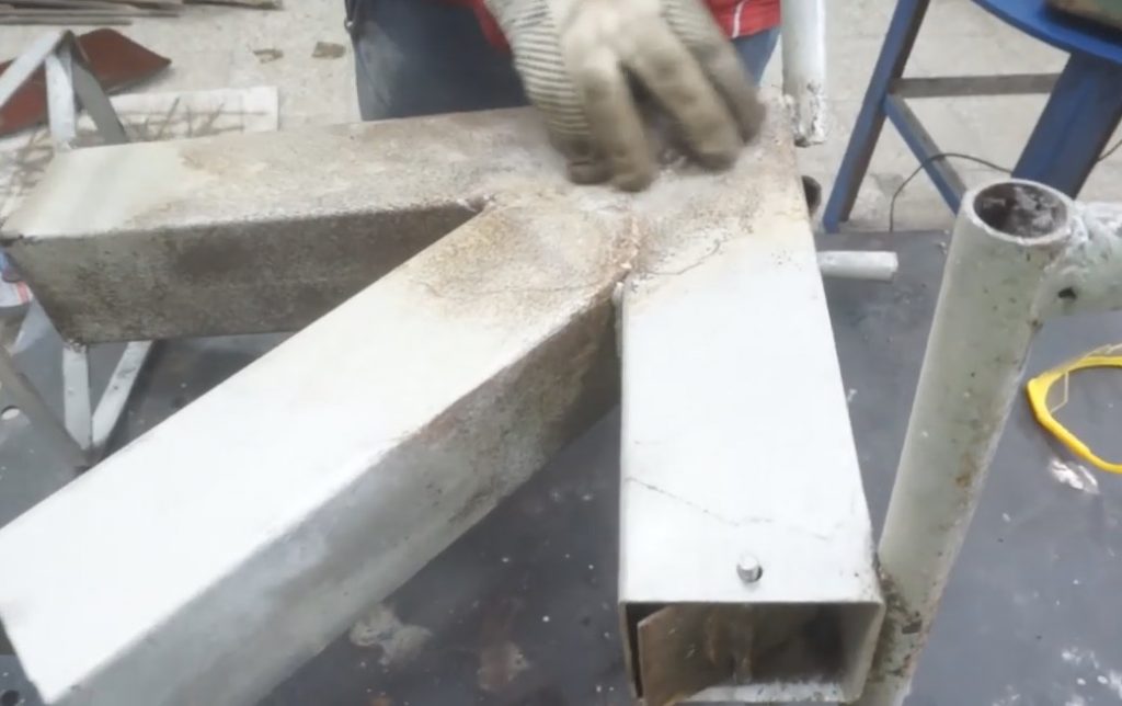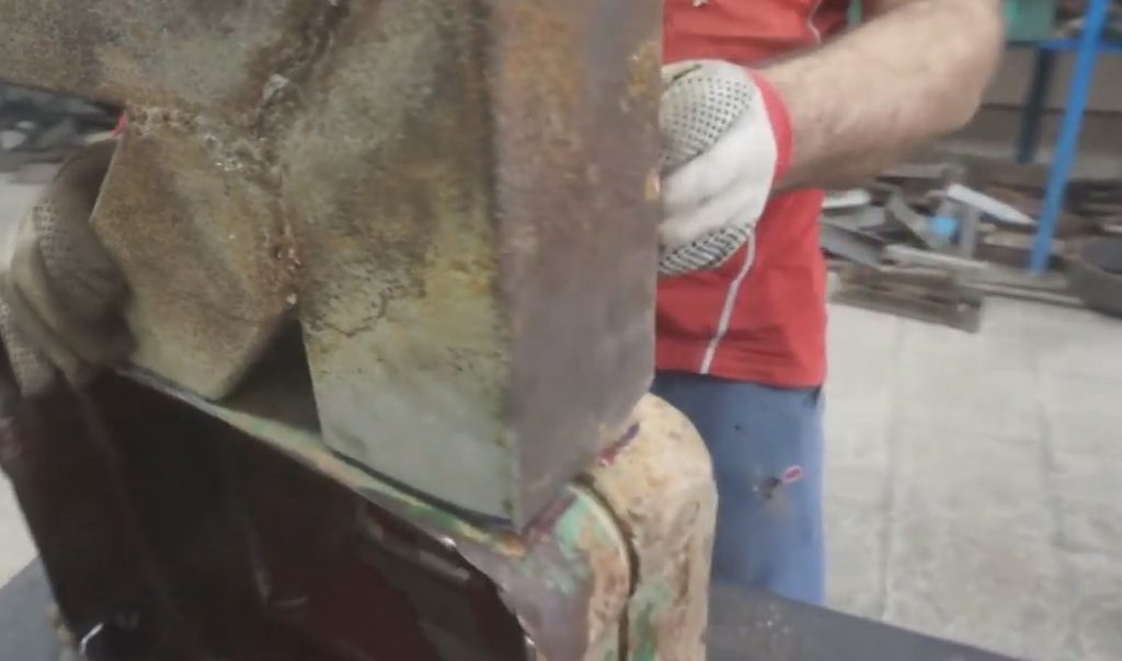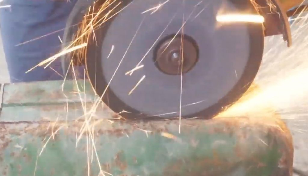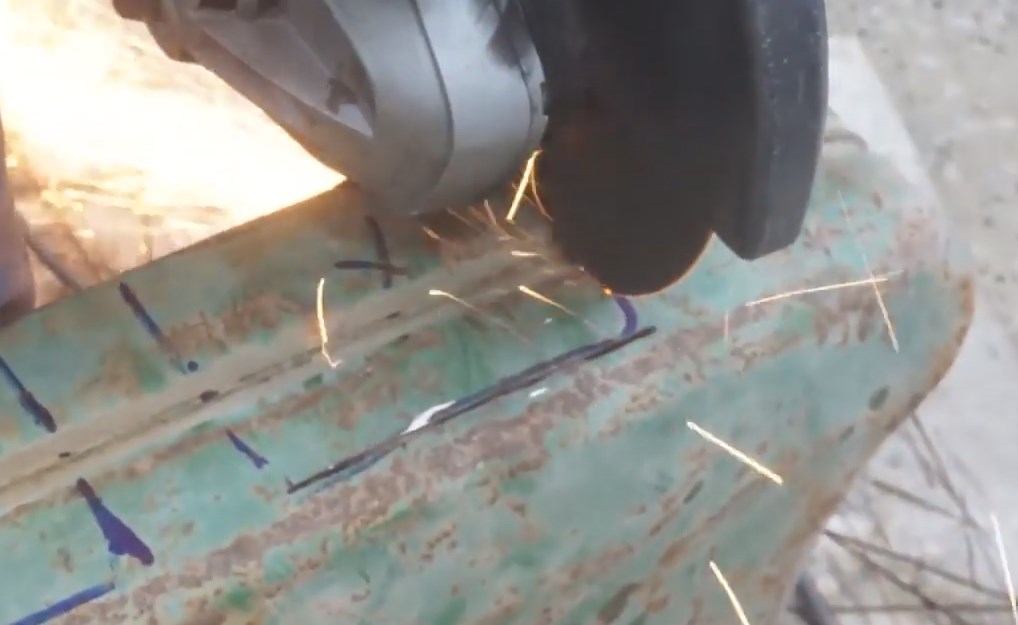 Když připojil obrobek k nádobě, udělal značku a přebytek odřízl bruskou.