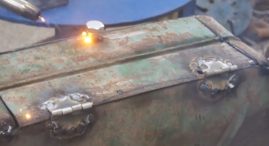 Panty přivařím k dříve odřezaným dveřím. Dva body za smyčku stačí.