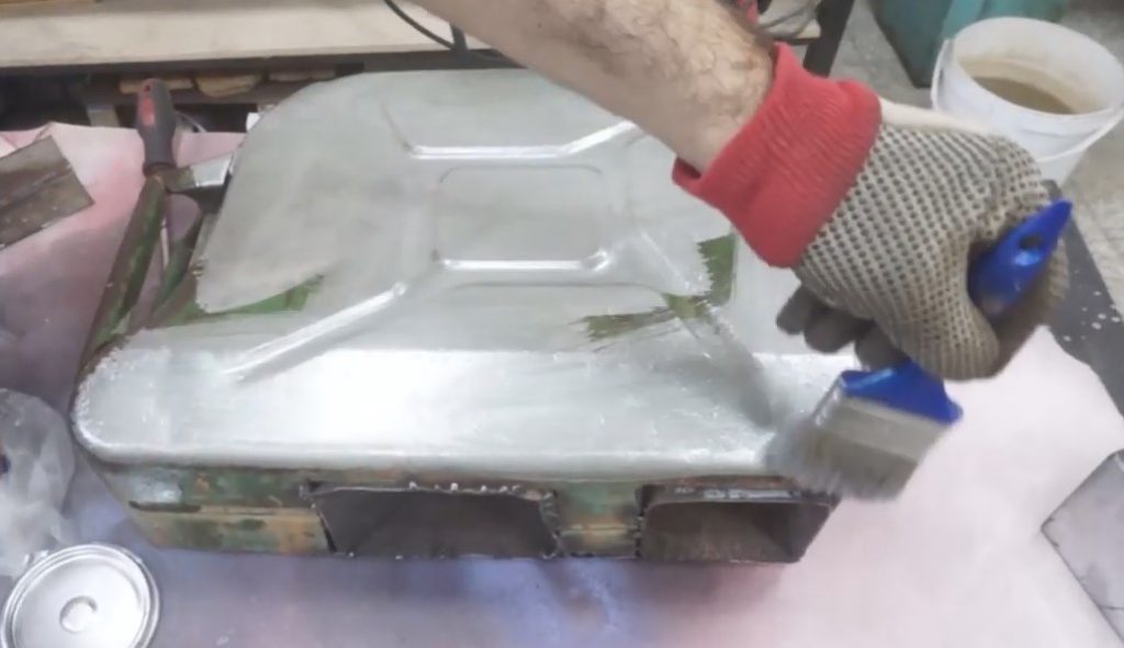 Namontuji zpět boční stěnu kanystru a opařím ji.
