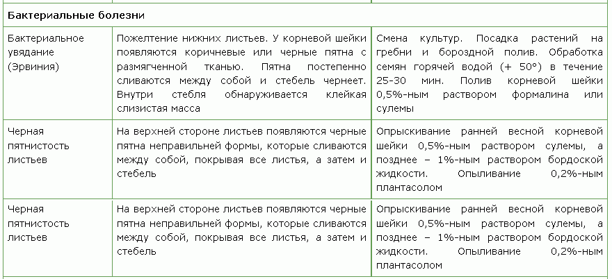 V tabulce - choroby, škůdci, způsoby prevence a odstranění těchto neštěstí: