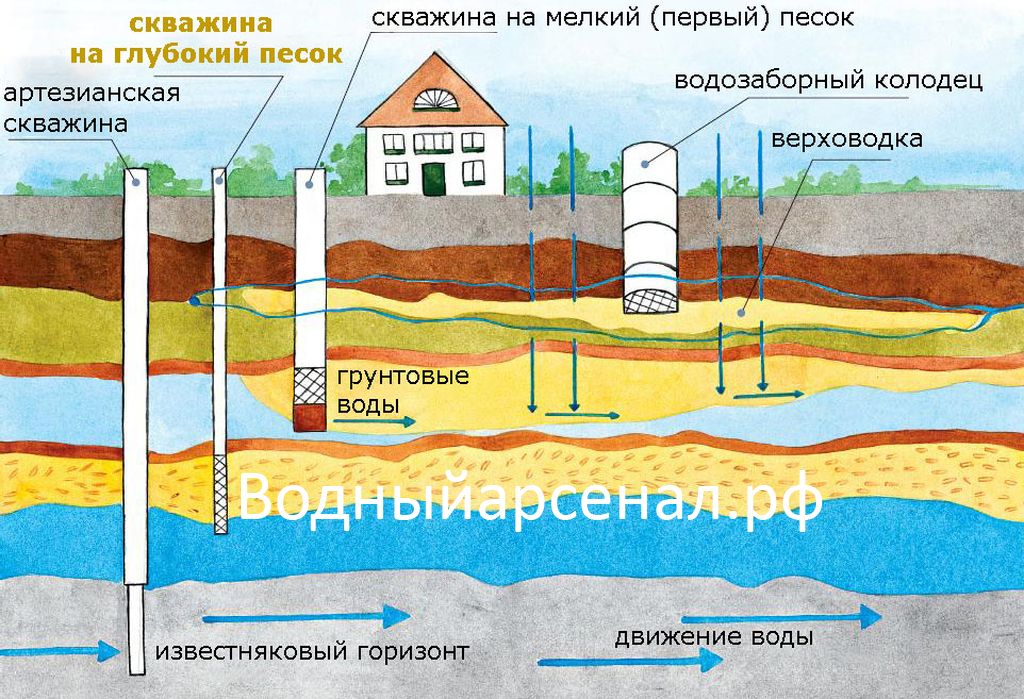 savý | Používá se, když střední vrstvy půdy zadržují vodu a spodní naopak mohou vlhkost absorbovat. Obvykle se skládají z lehké písčité půdy. Jsou větší než jiné studny v průměru a instalační hloubce. Schopný odolat omezenému množství vody. |
