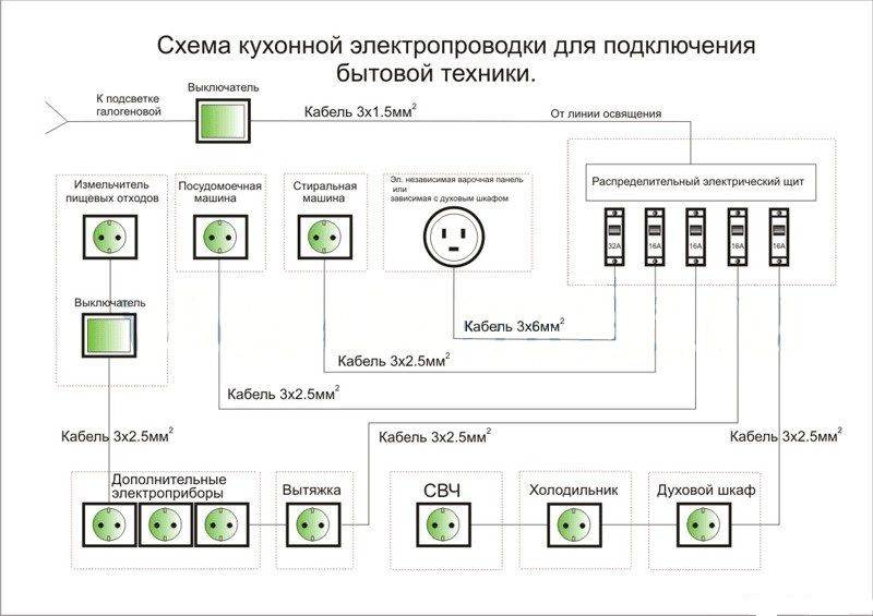 Poté jsou zásuvky rozděleny do skupin, jejich počet na jednom kabelu závisí na jeho průřezu, ale ne více než 3-5 kusů. Pro výkonné elektrospotřebiče je vhodné zajistit samostatnou linku, drát tak vydrží déle a bude bezpečnější. Výsledkem je, že v kuchyni získáte 3 až 7 linek, je zde instalováno mnoho zařízení.