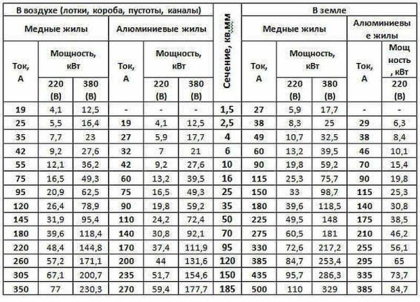 Když vyberete materiál kabelu, můžete vypočítat požadovaný průměr jeho žil. To se provádí s přihlédnutím k budoucímu zatížení, které se vypočítá podle zvláštní tabulky.
