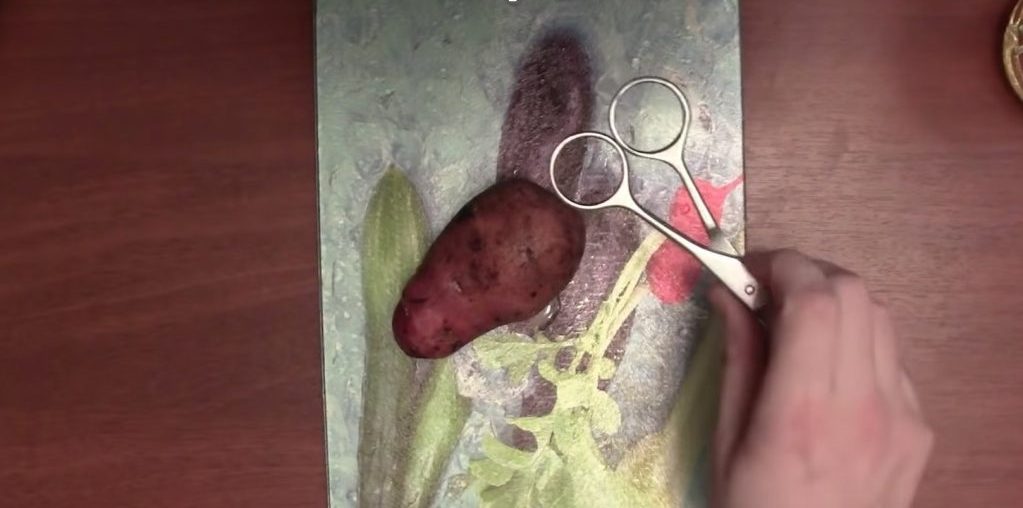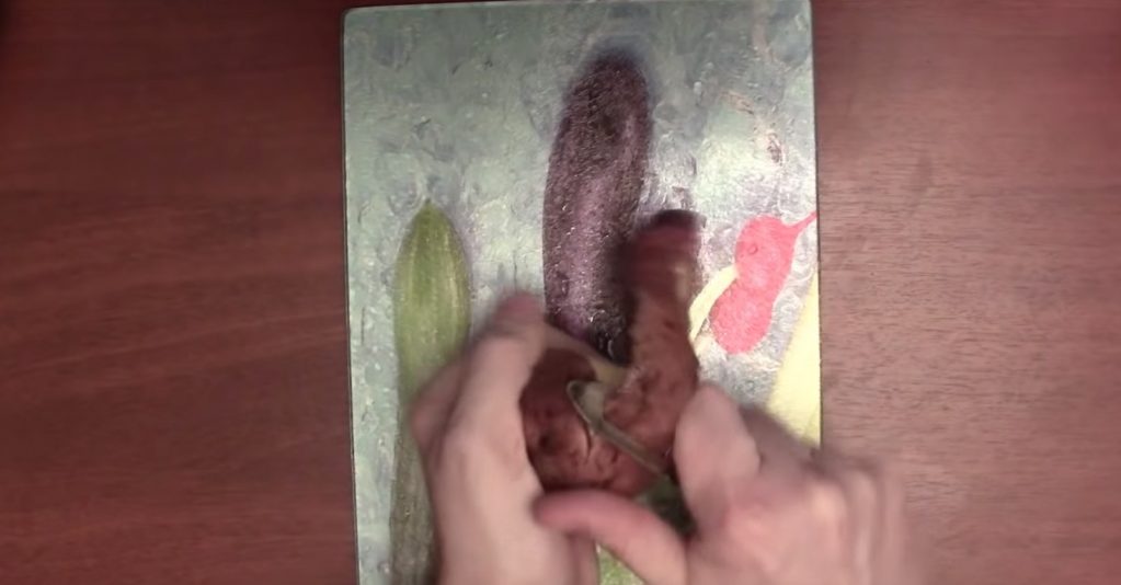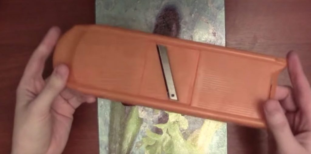 Krájení brambor se provádí pomocí řezačky zeleniny.