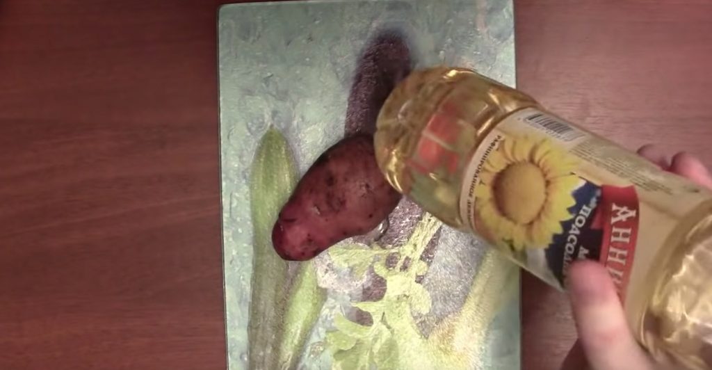 Dalším krokem je důkladně promíchat brambory s olejem a solí.