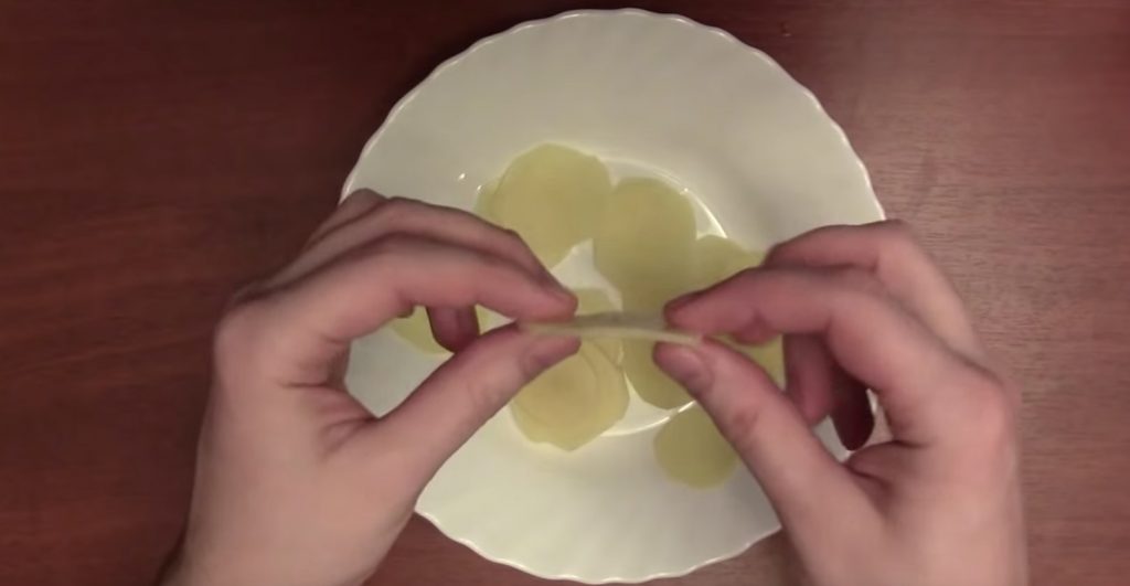 Škrob na povrchu brambor ubere chipsům chuť, takže je potřeba se ho zbavit. Můžete to udělat s obyčejnou vodou.