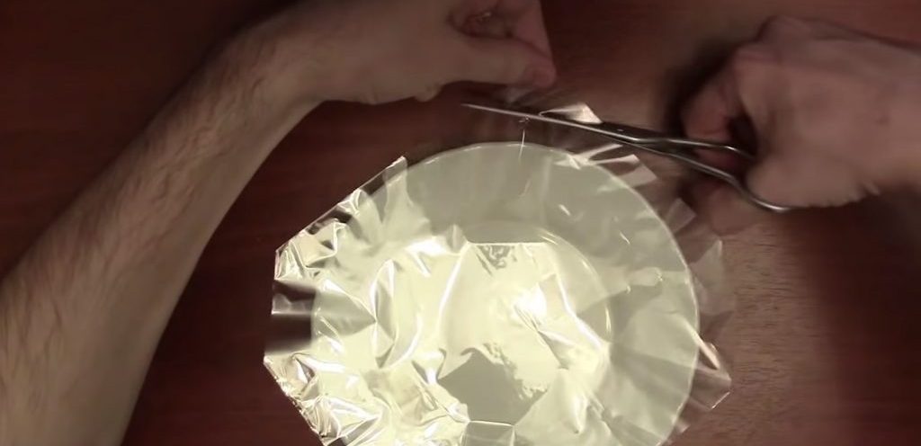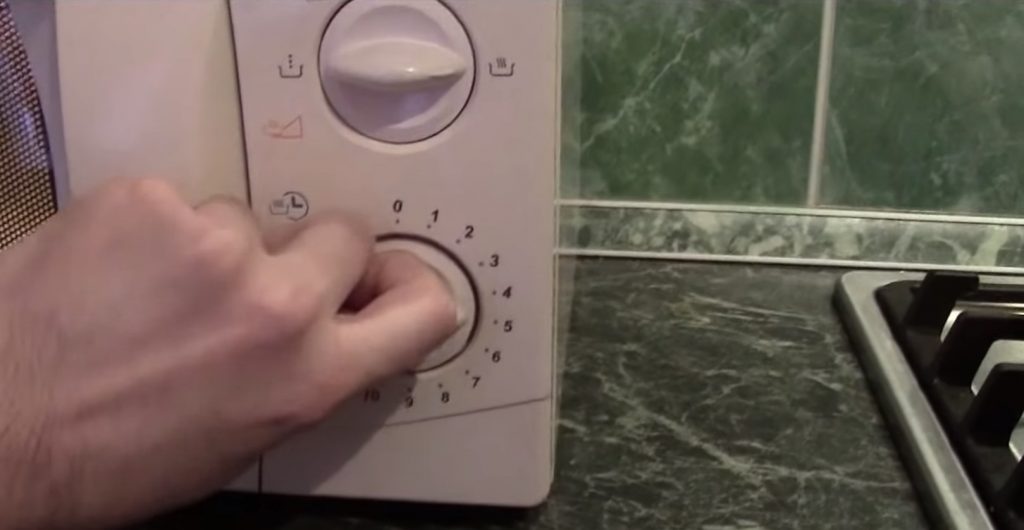 Talíř se vloží do mikrovlnné trouby. Poté se pec spustí na 5 minut na maximální výkon.