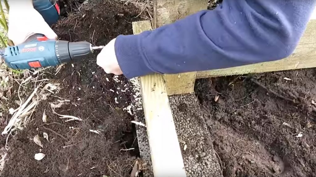 Spodní polyetylenové úchyty lze k základně přibít pomocí substrátu, ale je lepší je později vyměnit za dřevěné latě
