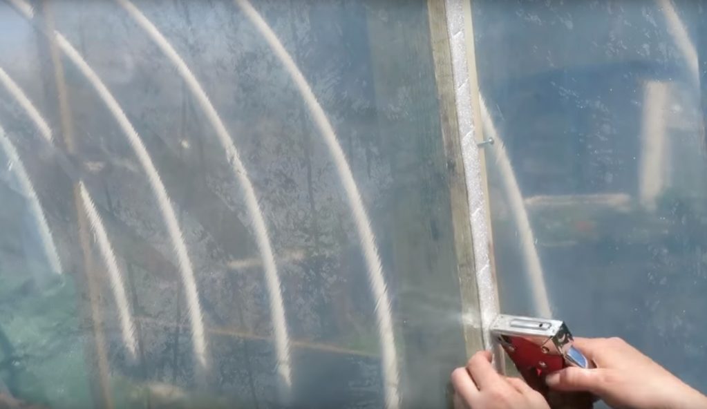 Dále je skleník pokrytý fólií, která je upevněna pomocí stejné sešívačky.