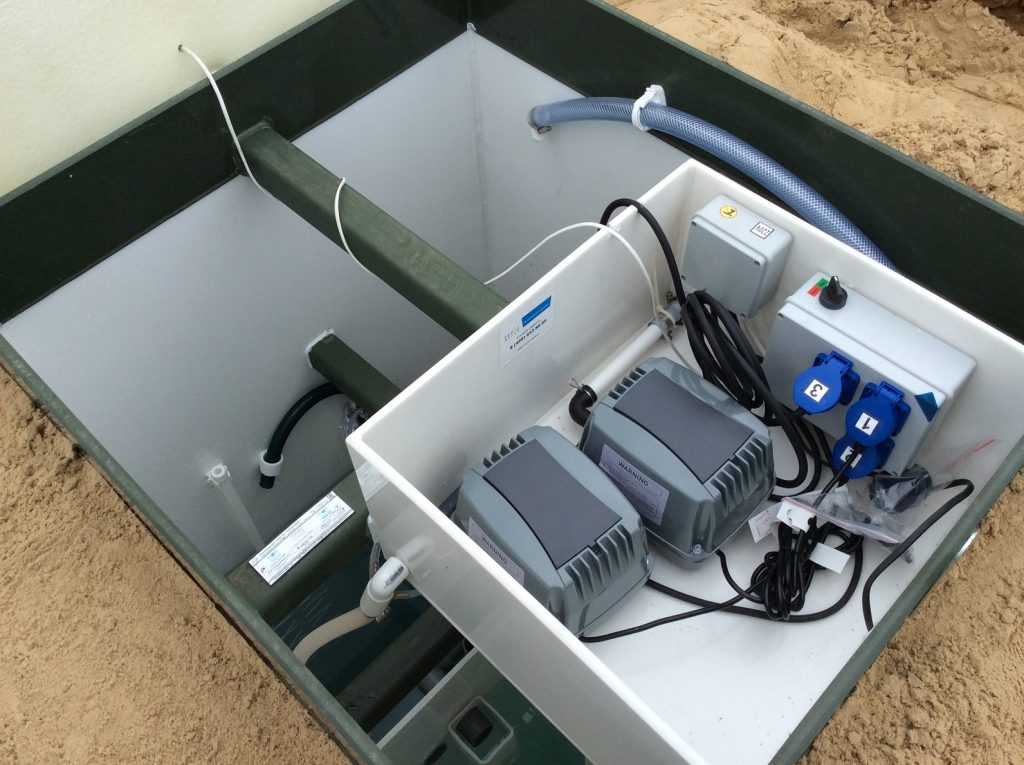 Do návrhu byla přidána nádrž s nuceným výtlakem s drenážním čerpadlem. To je nutné, pokud existuje možnost změny směru toku čištěné vody. To může vést k přetečení a nesprávnému fungování VOC.