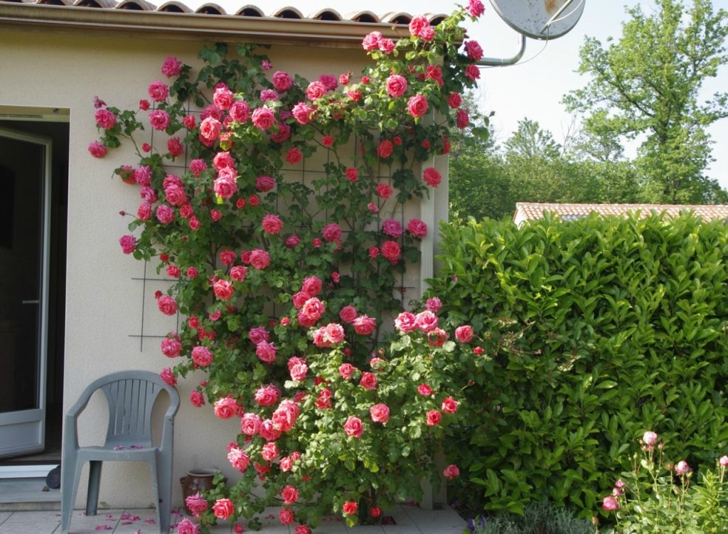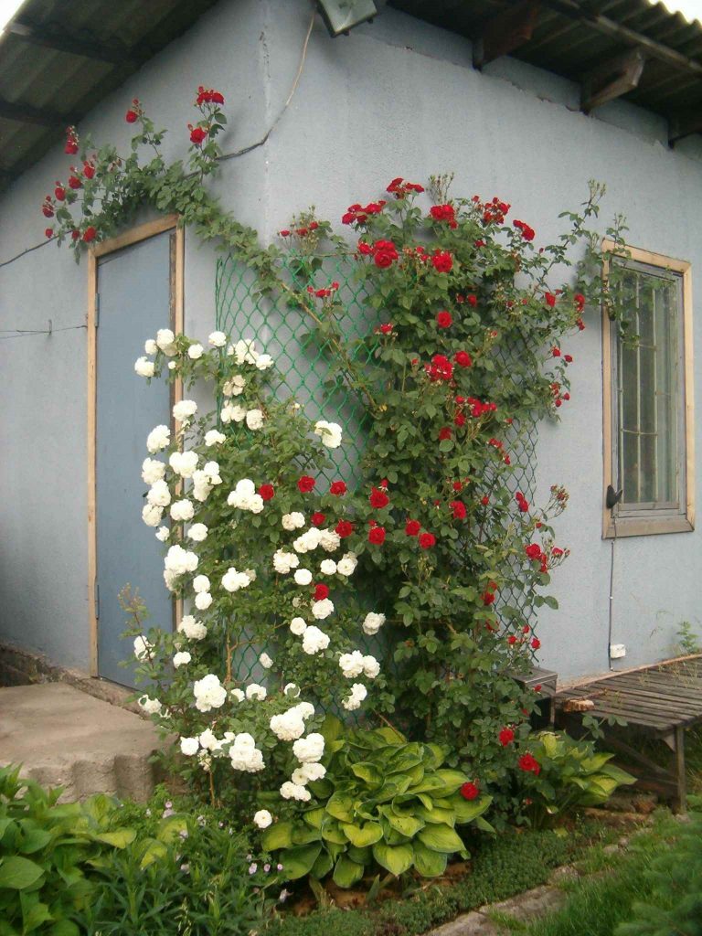 Podpěra musí být nutně průchozí, aby byla zajištěna kvalitní výměna vzduchu a zabránilo se hnilobě listů. Pokud potřebujete krásně ozdobit stěnu budovy, podpěra je vykopána ve vzdálenosti 30-40 cm od stěny a 30 cm od samotné růže.
