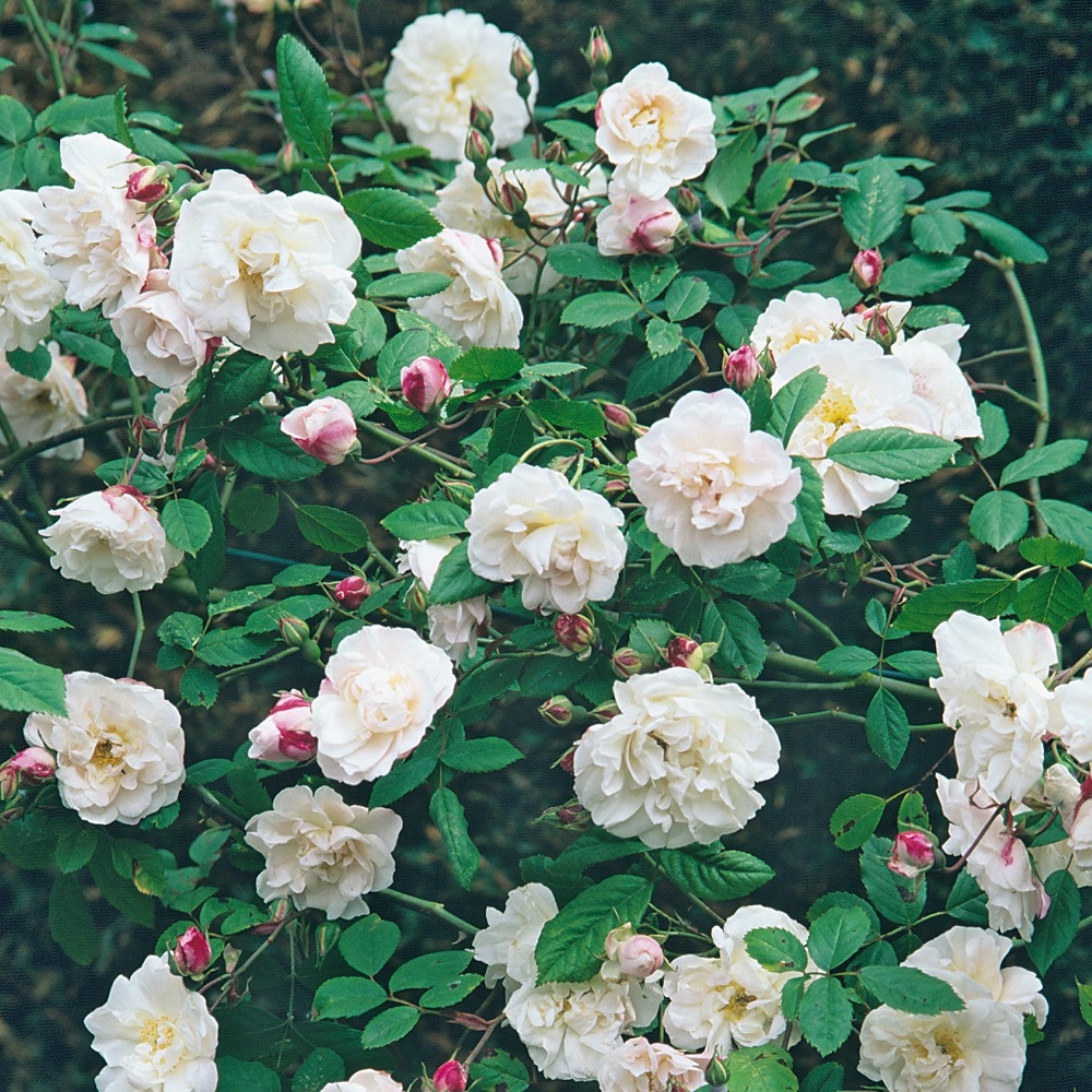 Tato odrůda patří k několika bílým polyantovým růžím. Jejich květy jsou froté, voňavé. Mají průměr 5-6 cm.Okraje okvětních lístků mají lehce znatelný světle růžový nádech. Mizí, jak kvete.