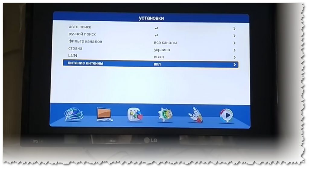 Mnoho televizorů je vybaveno vestavěnou funkcí napájení signálu. Najdeme a zapneme napájení antény.
