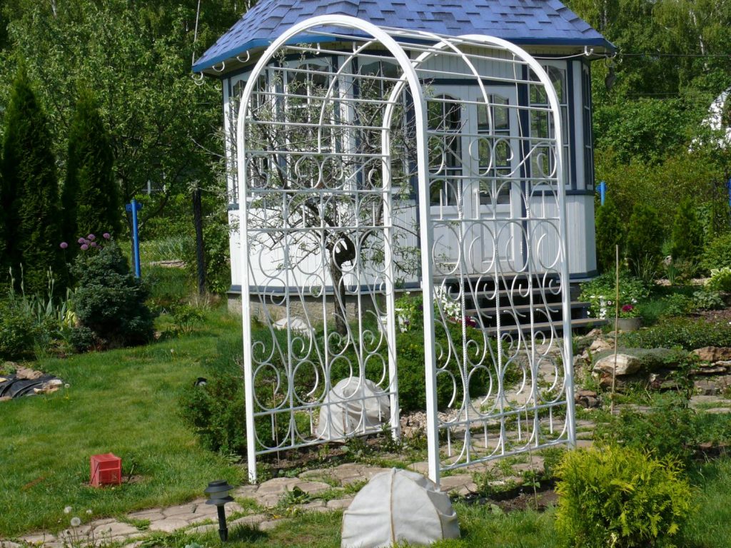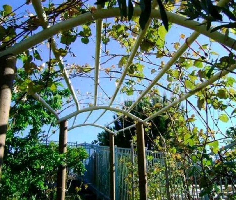 Tyto struktury jsou umístěny nad cestami a rostliny jsou vysazeny po stranách. Výroba klenuté mřížoviny z vinné révy bude stát více peněz než jednoduchá podpěra a bude vyžadovat spoustu práce. Někdy zahradníci jdou na trik a umístí pevné polooblouky blízko zdí budovy. Tímto způsobem získáte další stín, ale lze je postavit pouze podél jižní části domu a oblouk je třeba připevnit ke zdi.