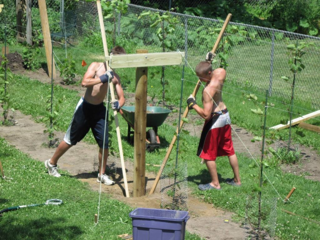 Pro konstrukci takové mříže na hrozny je lepší použít kov. Při výrobě bude zapotřebí svařovací zařízení a vykopání otvorů pro betonování základny do hloubky minimálně 65 cm.