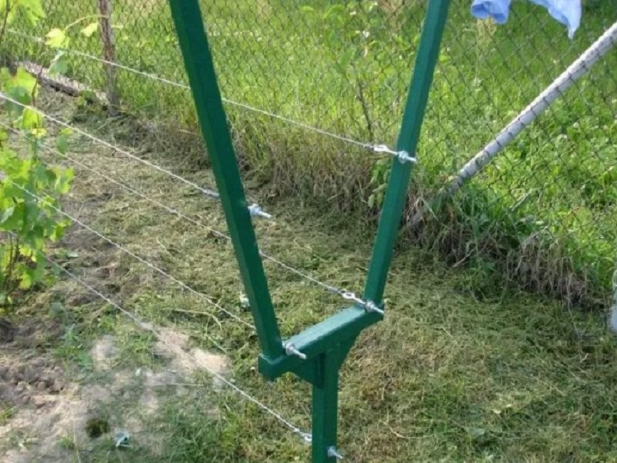 Sloupy jsou vyrobeny z výše uvedených materiálů. Jsou zahloubeny o 50 cm a jámy jsou vylity betonem, krajní pilíře jsou vyztuženy šikmými trámy. Výška musí být zvolena s ohledem na jejich výšku, aby člověk dosáhl na horní drát. Podpěry je třeba zakopat po 2,5–3,5 m, ponechat volné uličky alespoň 2,5 m.