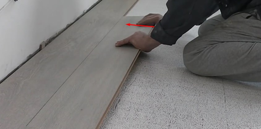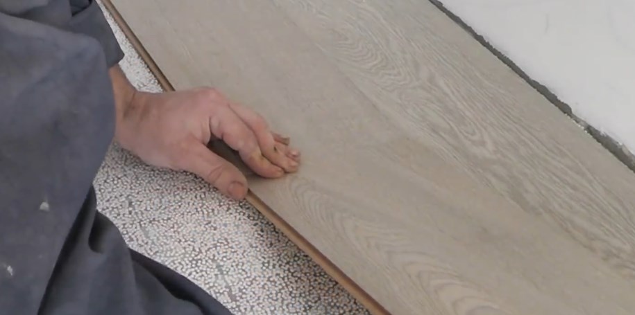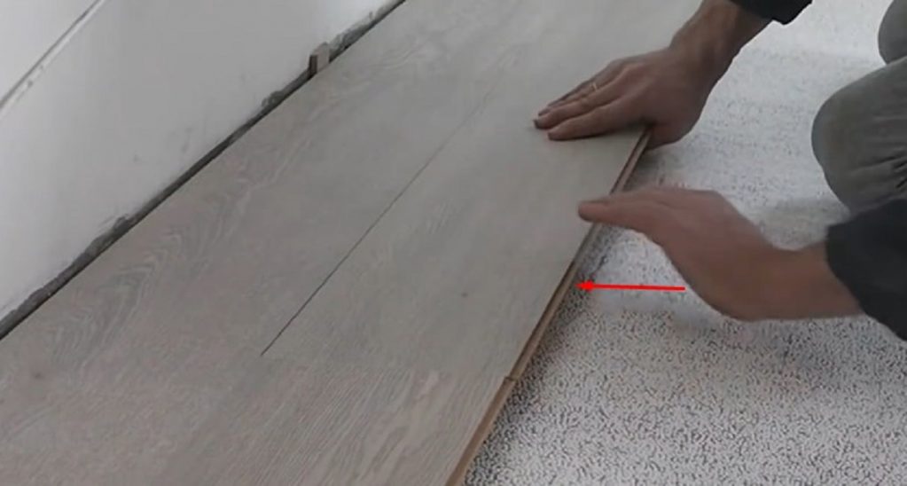 Pokud pravá hrana vstupuje do drážky poměrně snadno, pak podobné úsilí nestačí na pravou hranu. Bude nutné udeřit do levého okraje desky prudkým pohybem dlaně jednou nebo dvakrát.