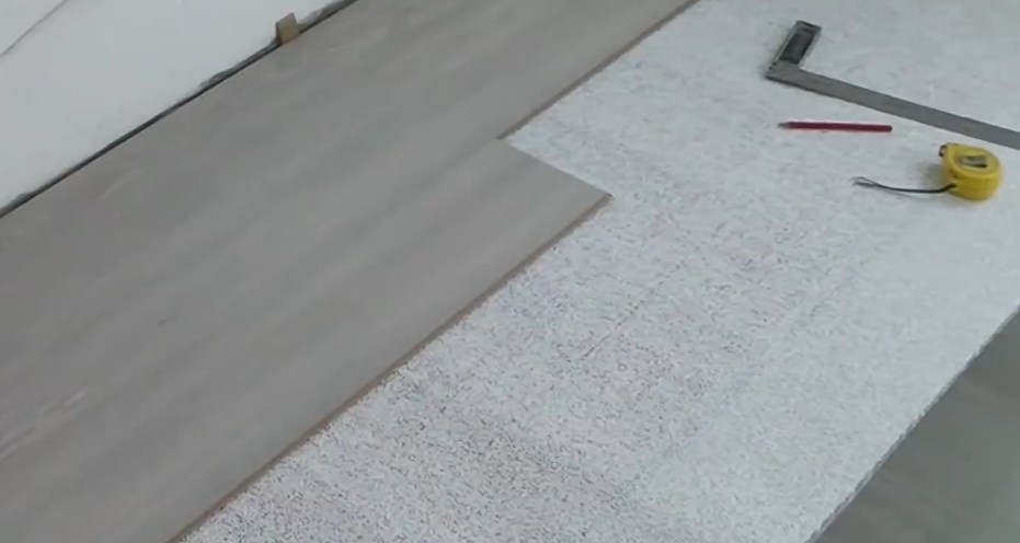 Značení se provádí lokálně. Nezapomeňte odsadit 8-10 mm. Přebytek odřízněte skládačkou. Postavíme desku do řady.