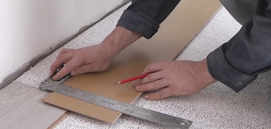 ke zdi, do pokoje. Mezi laminátem a stěnou by měla být mezera 8-10 mm.Poslední laminovaná deska má zpravidla větší rozměry. Je nepřípustné, aby byla kratší než 30 cm, pokud k tomu dojde, je první deska v řadě řezána.