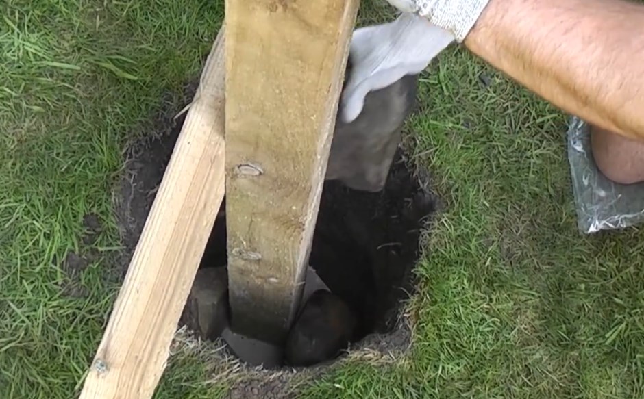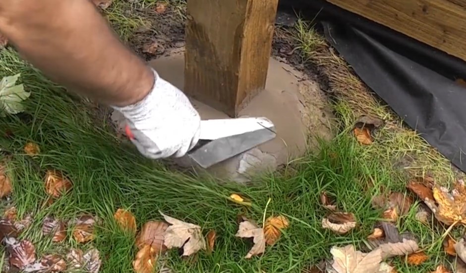 Poslední akcí je vytvoření bednění na patě betonovaného sloupu. Je potřeba, aby se v blízkosti sloupu nehromadila voda a ten nehnil.
