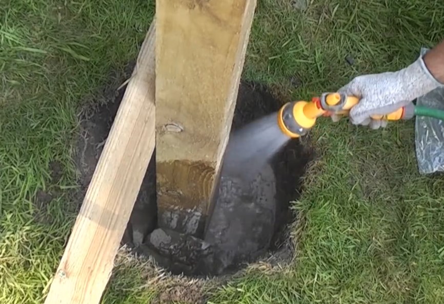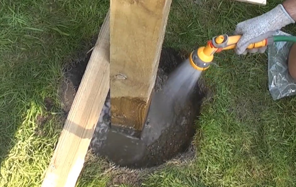 Tuto fázi rozdělíme na několik částí: zalití studny vodou a zasypání cemento-pískovou směsí. To bude vyžadovat přístup k vodě a cementové směsi v pytlích, v poměru 2-3 pytle na jamku.