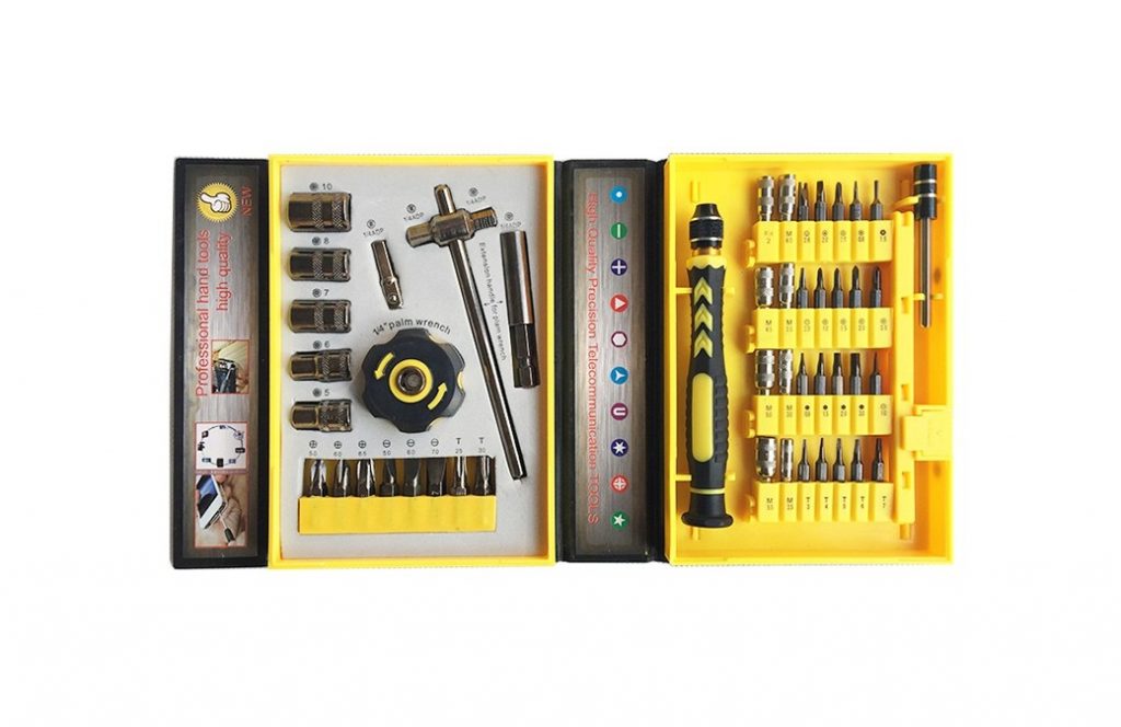 Το κινέζικο σετ FY-30PCS-TOOLS πήρε τη θέση του στη βαθμολογία λόγω της διαμόρφωσης, η οποία είναι ασυνήθιστη για τις περισσότερες προσφορές σε αυτήν την κατηγορία. Εκτός από τυπικά αντικείμενα όπως κατσαβίδια, λαβίδες και τσιμπιδάκια που σας επιτρέπουν να αφαιρείτε εύκολα ένα μικρό μπουλόνι από μια τρύπα, μπορείτε επίσης να βρείτε πένσες, μαγνήτη που έλκει τις βίδες, ακόμη και βεντούζες για απαλή αποσύνδεση της θήκης της συσκευής.