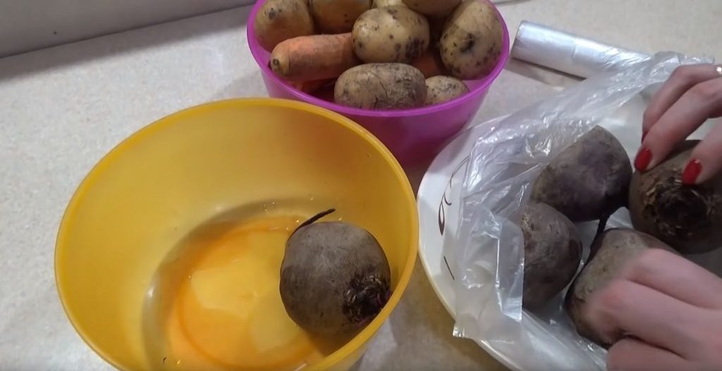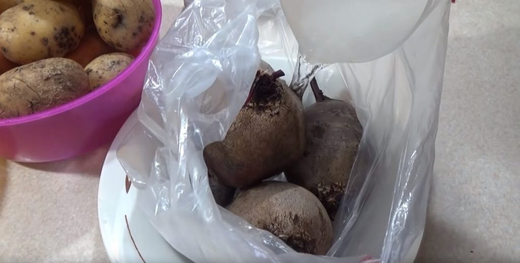 Για να εξασφαλιστεί η ομοιόμορφη θέρμανση των τεύτλων από μέσα και έξω, είναι απαραίτητο να δημιουργηθεί ένας περιορισμένος όγκος γύρω από τις ριζικές καλλιέργειες στον οποίο θα κυκλοφορούν υδρατμοί. Για να το κάνετε αυτό, μπορείτε να χρησιμοποιήσετε τη συνηθισμένη πλαστική σακούλα.