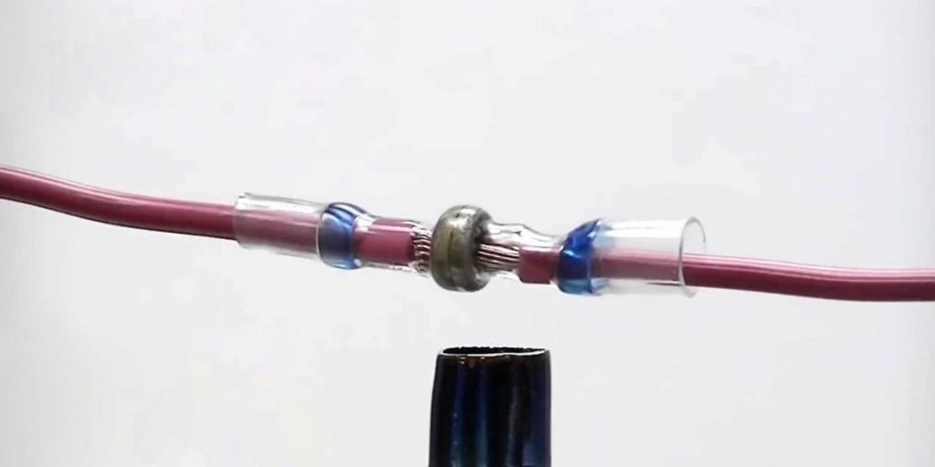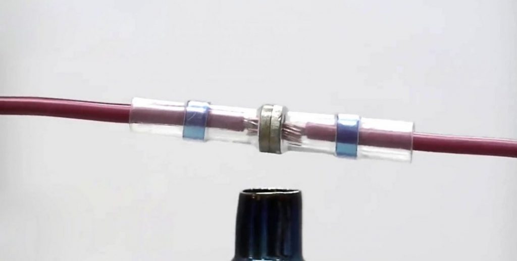 Aquí no se necesitan giros, abrazaderas ni terminales. Solo termorretráctiles de nueva generación y prácticamente cualquier fuente de calor.
