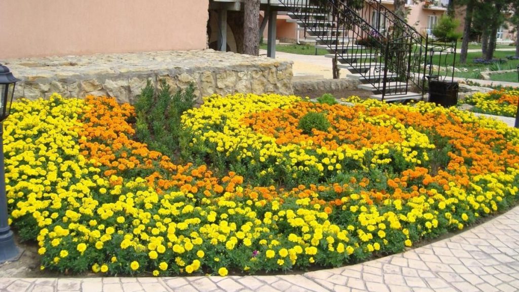 Foto de vallas de macizos de flores de tipo regular.