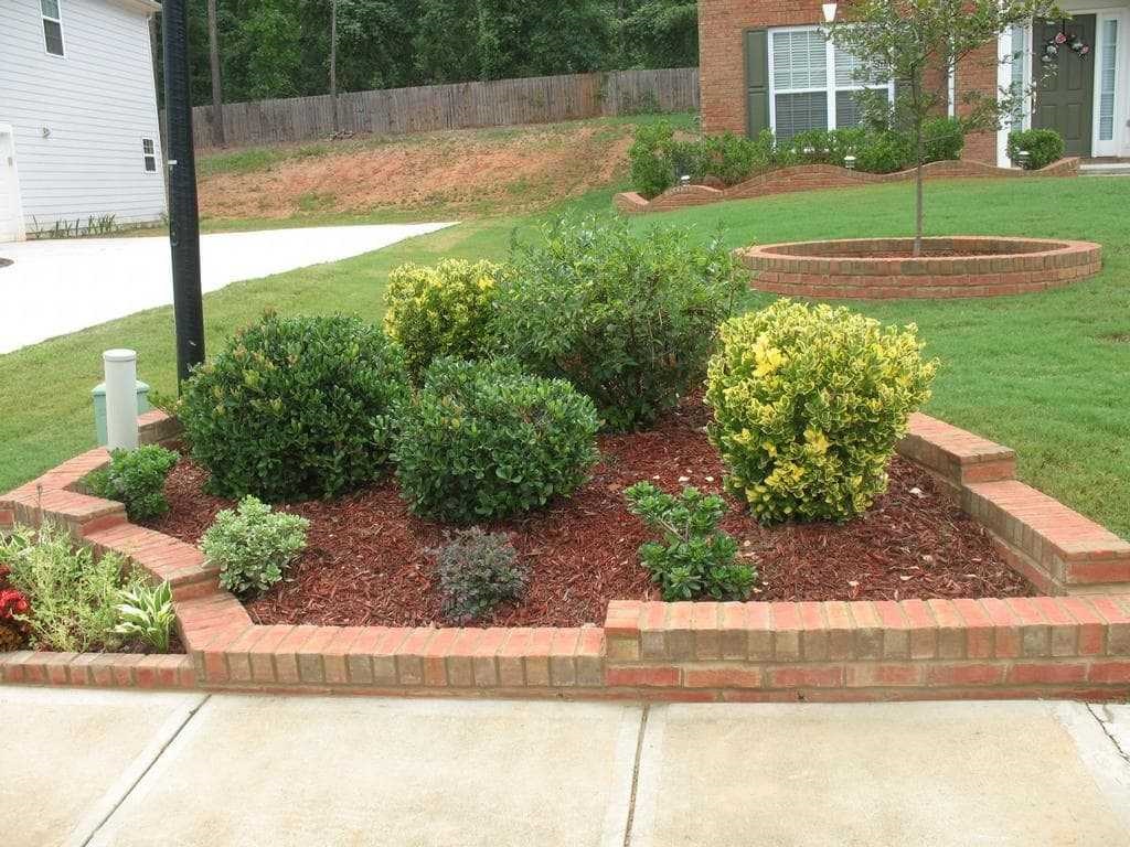 Macizo de flores cercado con ladrillo colocado en ángulo