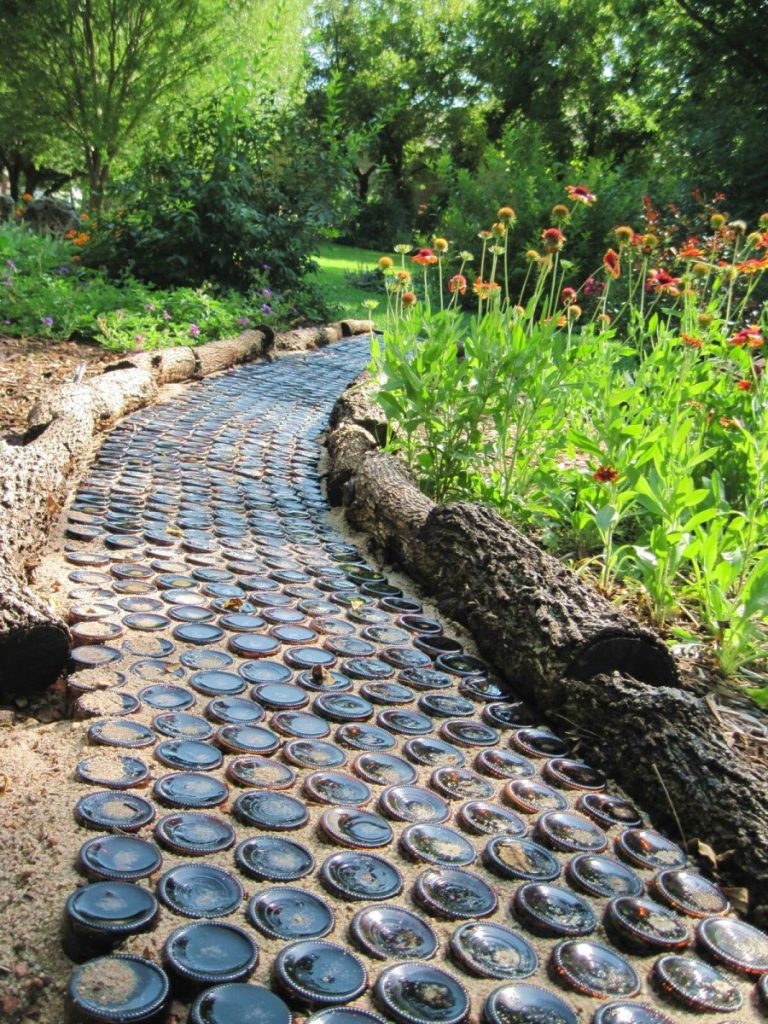 La conveniencia de las estructuras redondas al crear cercas es obvia: todos los elementos son más o menos iguales y se pueden organizar arbitrariamente uno al lado del otro. Dado que las botellas también tienen forma redonda, también se pueden adaptar a la tarea de cercar macizos de flores. Los tonos verdes de la mayoría de los tipos de vidrio armonizarán perfectamente con el paisaje circundante.