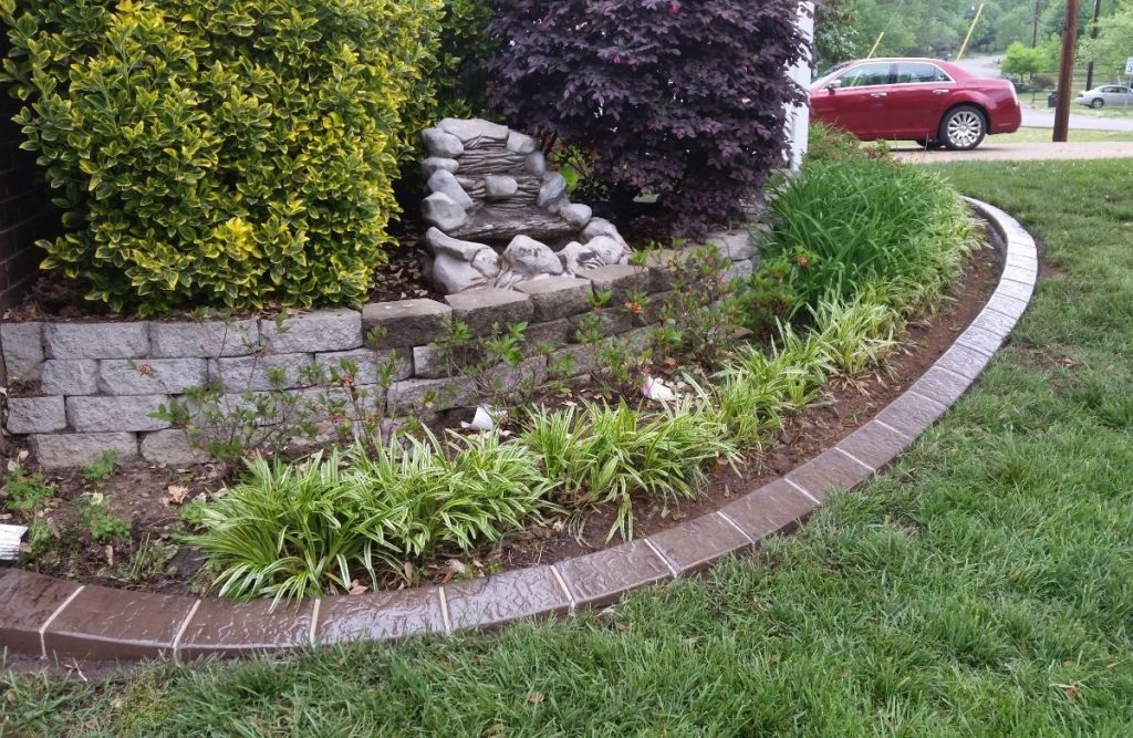 Después de verter y curar el hormigón, se cubre con pintura (el aspecto del cemento como cerca de un macizo de flores no es muy estético), y se le aplica un hidrofugante encima.