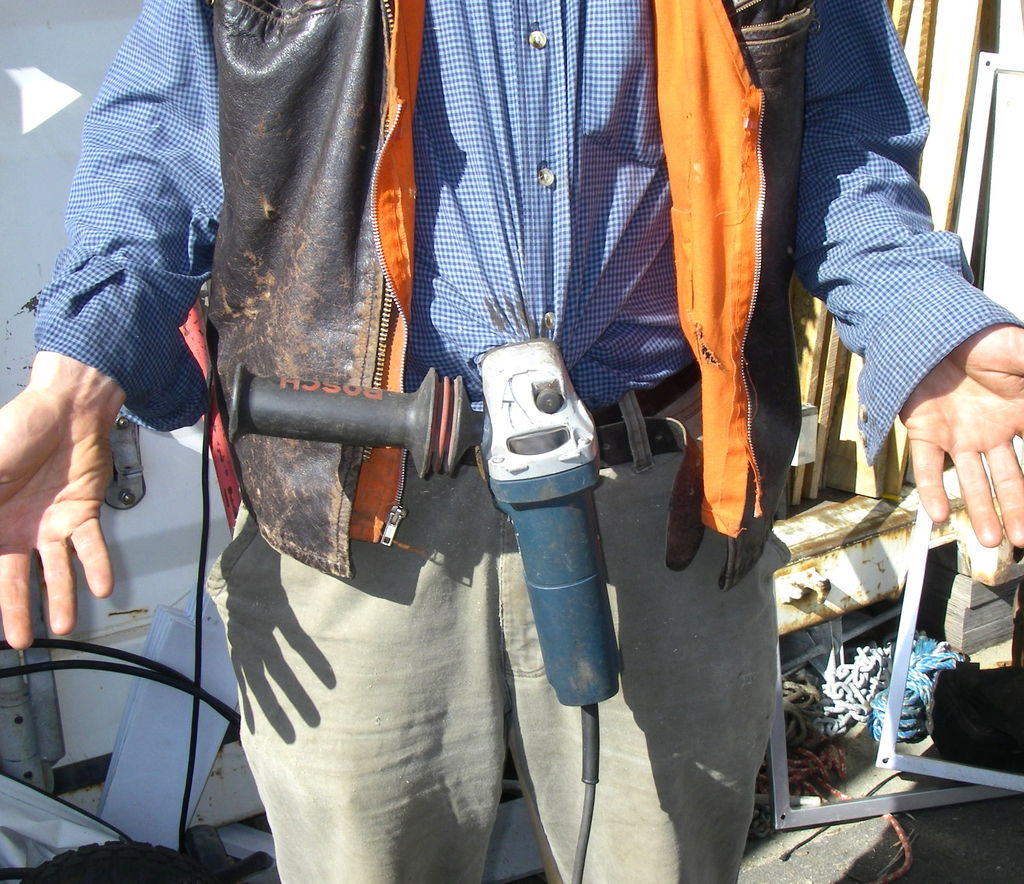 Amoladora angular fiable de una empresa japonesa. No todos estarán familiarizados con la ubicación del botón de inicio, en el lateral. Bastante potente y ruidoso.