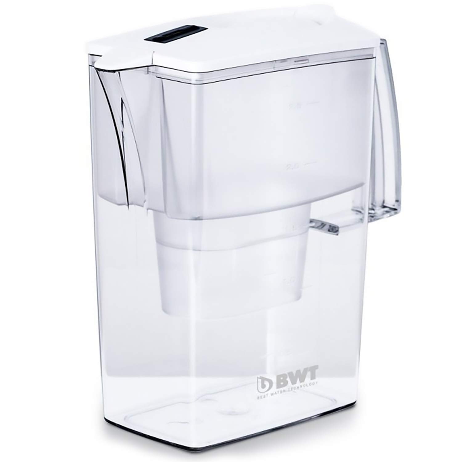 La tapa está diseñada con un mecanismo de plegado "Easy-fill" para facilitar el llenado del recipiente. Dispone de indicador mecánico para cambio de módulo de filtración. El pequeño tamaño de 25x11x25 cm permite colocar el dispositivo en cualquier zona estrecha, incluso en la puerta lateral del frigorífico.