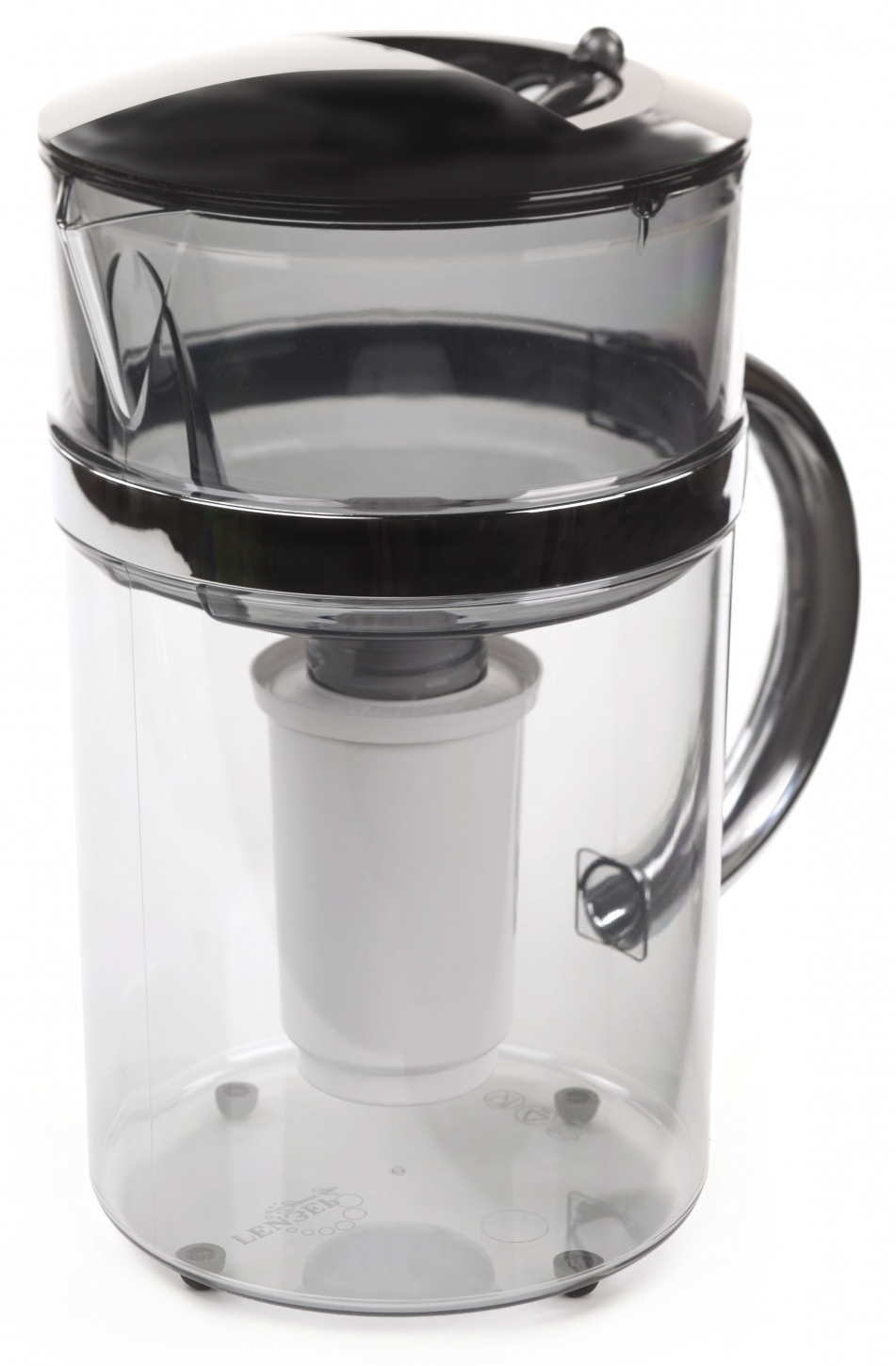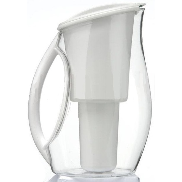 Una jarra de forma ergonómica con un volumen de 2,8 litros, hecha de plástico de alta calidad, tiene un cuerpo transparente. La vida útil del módulo de filtración, que se incluye en el kit, es de 170 l, el volumen del embudo es de 1,2 l. Las dimensiones del dispositivo son solo 26,7x10,6x25,8 cm, por lo que la jarra cabe incluso en la puerta lateral del frigorífico.