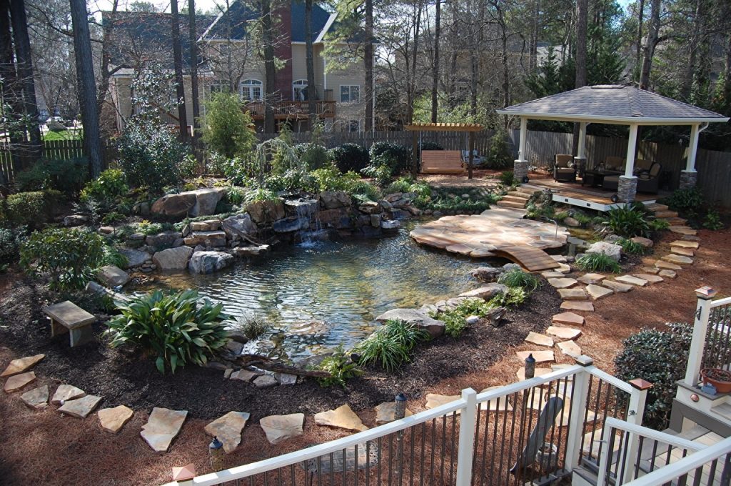Es todo un ecosistema, con plantas seleccionadas. Los embalses a menudo atraen libélulas, ranas. La organización del embalse es un trabajo difícil, que requiere una elección cuidadosa de la ubicación, la ausencia de árboles grandes en las cercanías y la consideración de otros matices. Pero este trabajo es hermoso resultado!