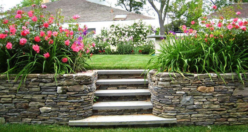 Jardines en terrazas de varios niveles - no muchos pueden permitirse tal lujo, pero la idea de tales parcelas se puede repetir en 15 acres estándar.