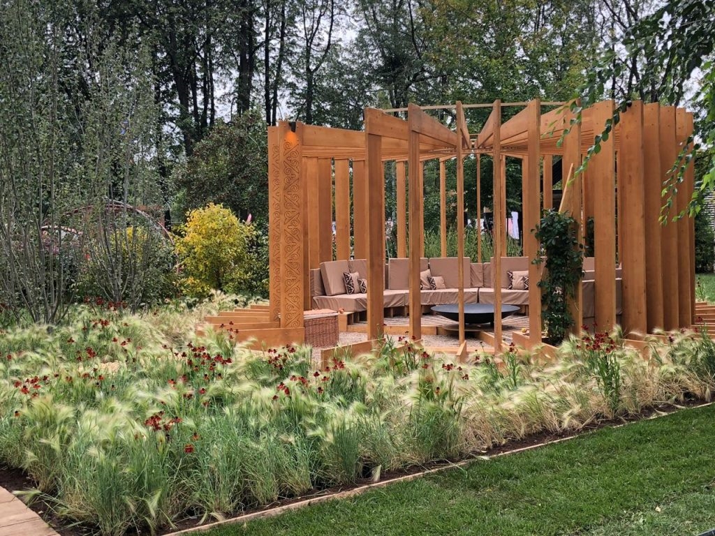 Es mejor colocar una glorieta abierta en el rincón más alejado del sitio, rodeada de otras de gran tamaño. Esto crea una sensación de privacidad, aislamiento y tranquilidad. cenador de madera y muebles da una agradable sensación táctil, incomparable con el hormigón. Una alternativa a la madera en su sitio son los muebles de mimbre, que se ven aún más agradables estéticamente.