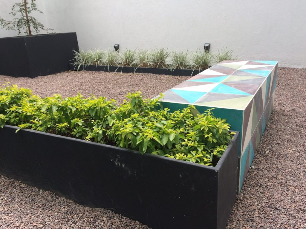 Una versión moderna del diseño del paisaje. Todo es estricto, conciso, subrayado. Una pasarela cubierta conduce directamente al suculento jardín y de regreso a la casa. Tal jardín requiere un mínimo de cuidado y riego, tolera el calor con calma y conserva su efecto decorativo durante un largo período de tiempo.