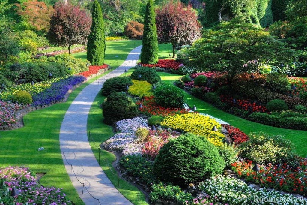 Interesantes jardines paisajísticos, creados en estilo alpino, campestre, clásico. También son populares los jardines de floración continua, que se deleitan con un derroche de colores de abril a octubre. Uno de ellos está en la foto de abajo.