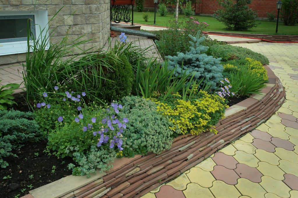 Colina alpina, jardín de rocas: un clásico y lo más destacado del paisaje del patio trasero. Pero se puede presentar en una variedad de formas y proporciones. Aquí parece una montaña de piedra, generosamente decorada con plantas perennes, musgo y suculentas de tamaño reducido.Si hay mucha metanfetamina en el jardín, este es un elemento decorativo maravilloso, además, un alto tobogán alpino protege el sitio del viento.
