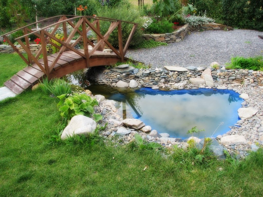Un puente sobre un estanque o un arroyo seco: muchas personas sueñan con esto. Una forma arquitectónica tan pequeña agrega volumen, textura al jardín y hace que los paseos sean aún más agradables. El puente puede estar hecho de troncos y tablas, piedra, ladrillo, elementos forjados. Los diseñadores a menudo lo usan para la decoración de jardines y lo colocan lejos de los edificios.
