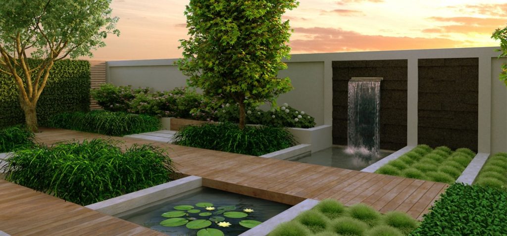 Algo como esto debería verse como un proyecto de paisaje para una parcela personal.
